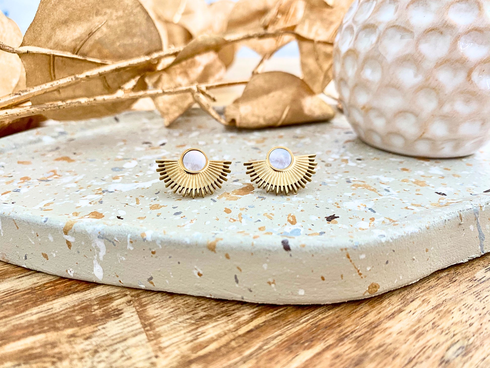 - Boucles d'oreilles en acier inoxydable doré et nacre