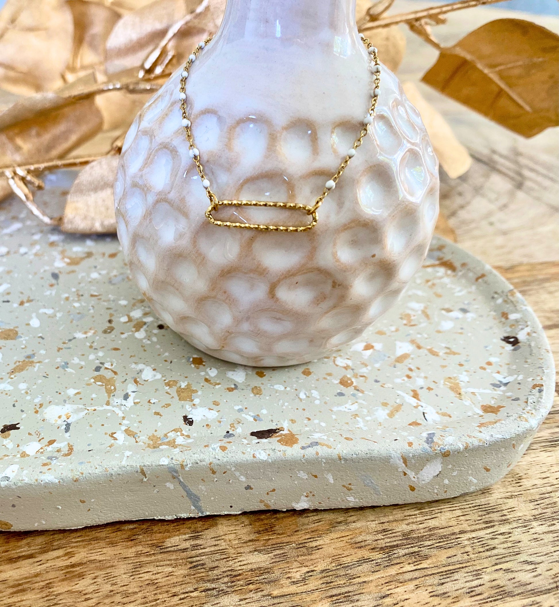 - Bracelet émail blanc en acier inoxydable doré