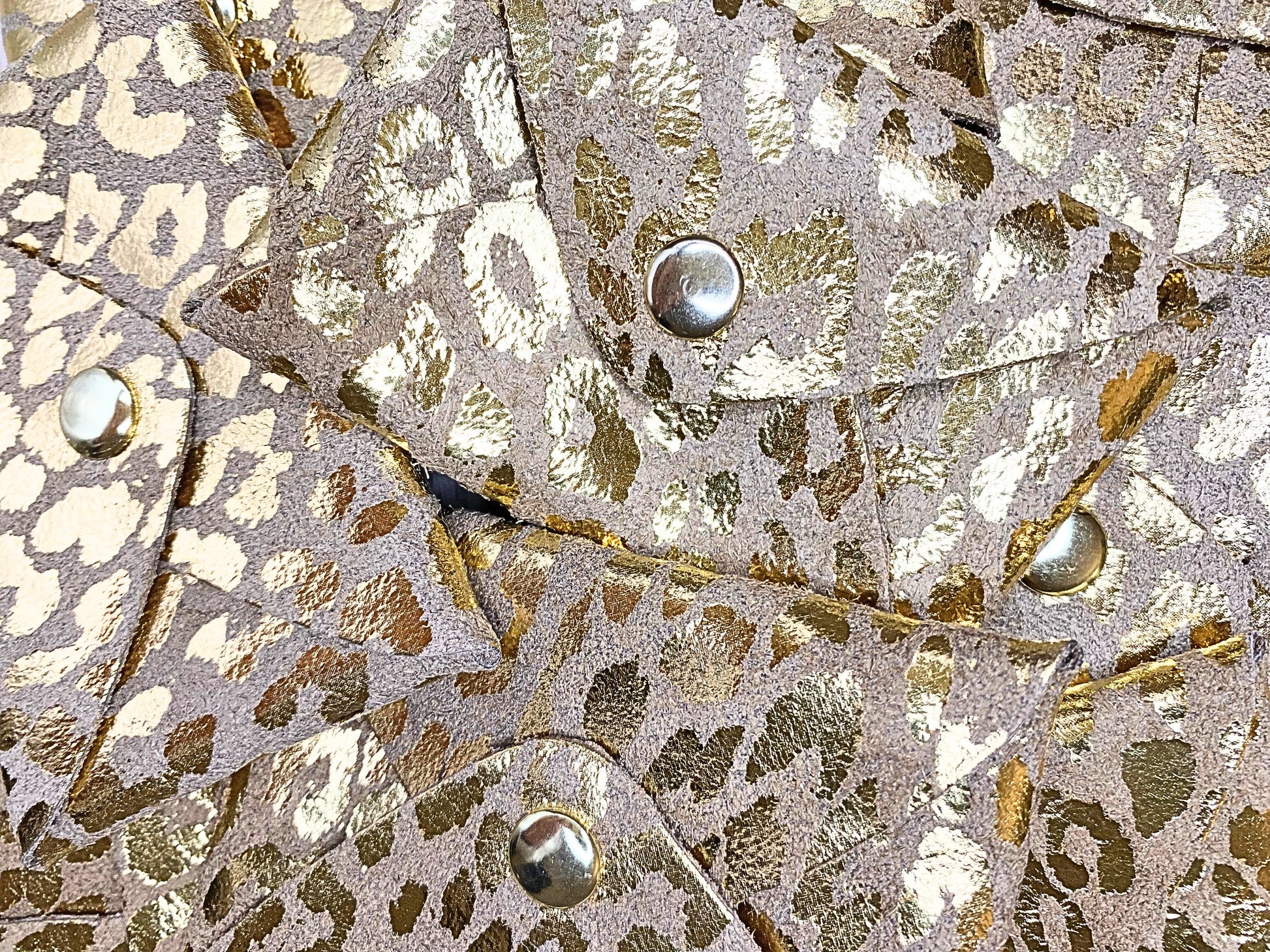 Matière : cuir de vachette, bouton en laiton aimanté.
