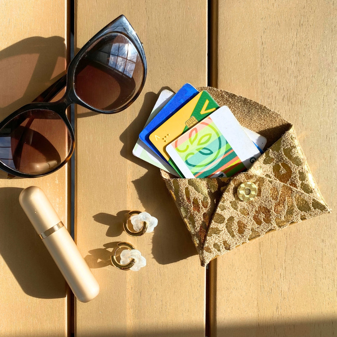 Porte-cartes/Porte-monnaie fabriqué en Italie, en cuir véritable de vachette.