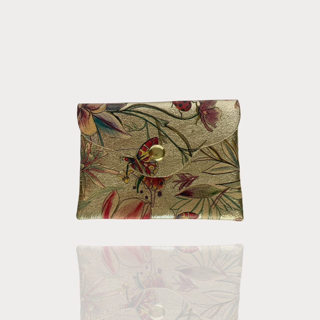 - Pochette en véritable cuir de vachette avec imprimé fleuri